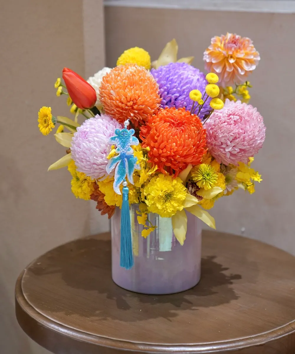 Bình hoa cúc mẫu đơn là sự kết hợp hài hòa giữa dáng cúc mềm mại và vẻ đẹp kiêu sa như hoa mẫu đơn. Đây là lựa chọn hoàn hảo để trưng bày phòng khách, làm quà tặng sinh nhật, tân gia hay chúc mừng khai trương. Với nhiều gam màu rực rỡ như hồng, trắng, vàng, đỏ… bình hoa mang lại không gian tươi mới, sang trọng và đầy sức sống.