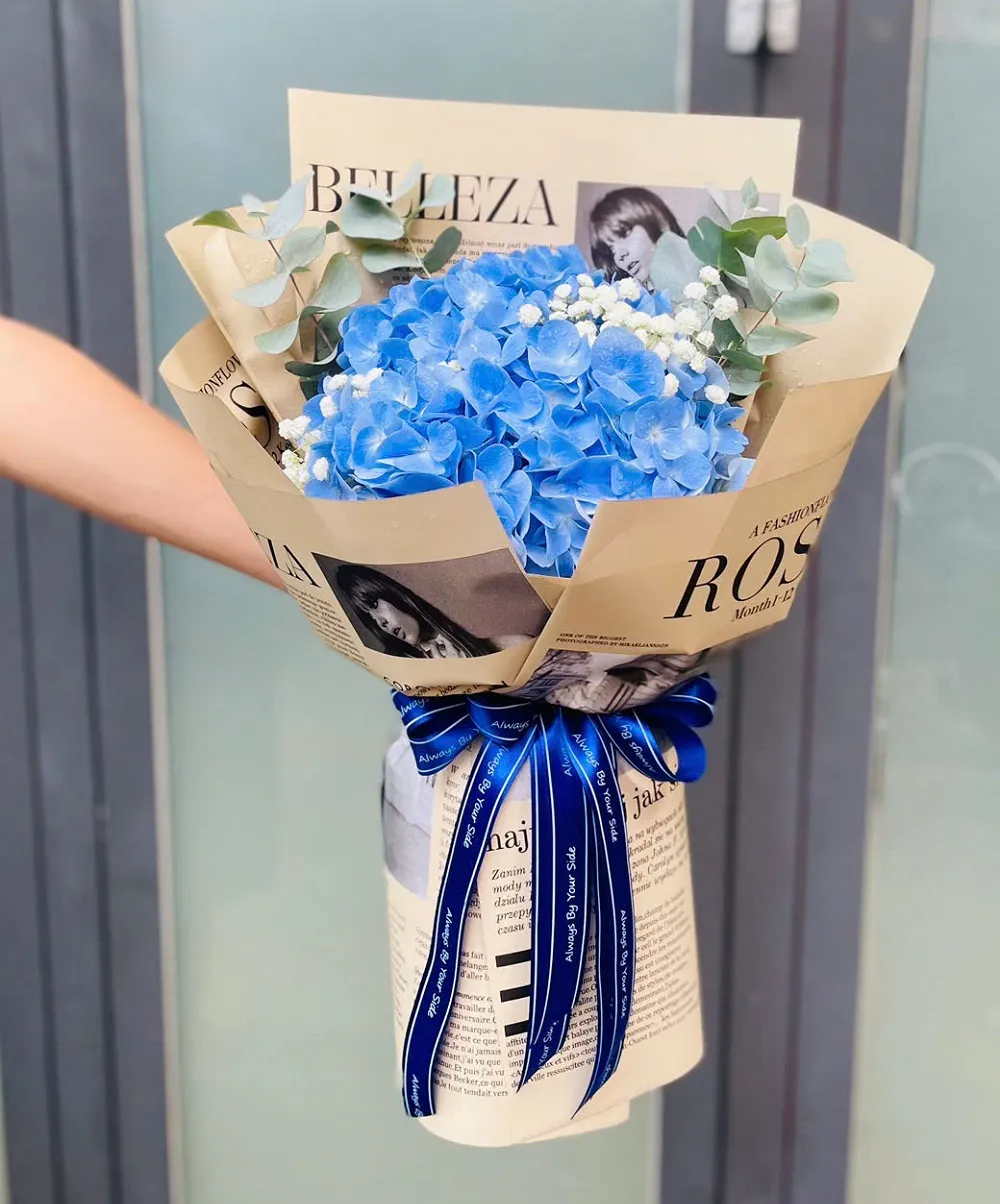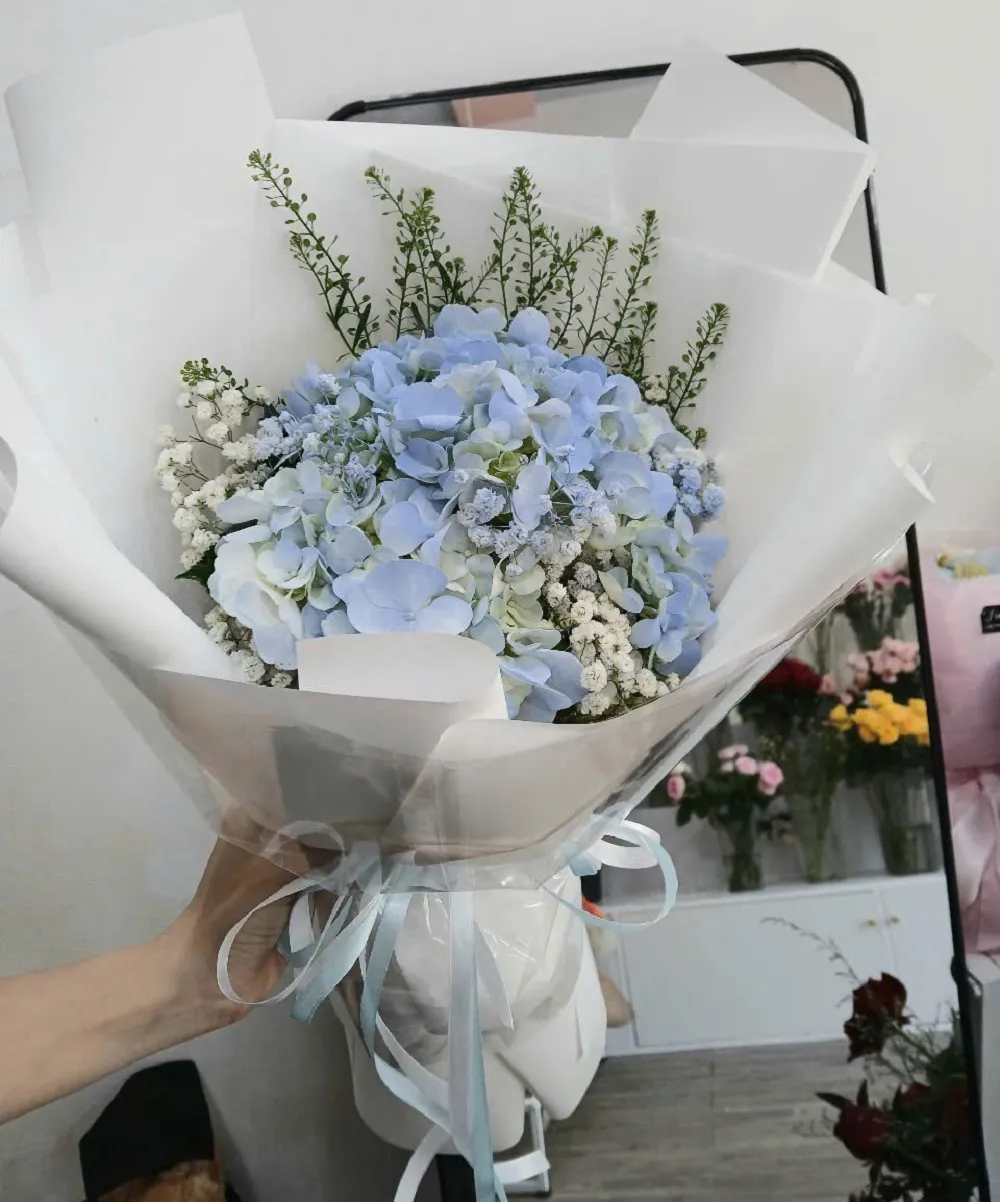 - 1 bông tú cầu xanh dương, xanh bơ hoặc hồng