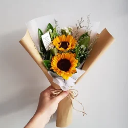 Mẫu bó hoa hướng dương 2 bông tại 7F Garden không chỉ là sự kết hợp hài hòa của những bông hoa tinh khôi mà còn là một tuyên ngôn về tình yêu và sự lạc quan.