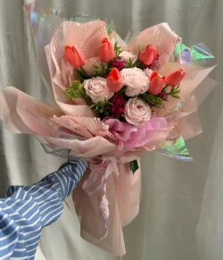 - Mỗi bông hoa được kết hợp cẩn thận, tạo nên những tác phẩm nghệ thuật tinh tế và độc đáo, mang đến sự trang trí tuyệt vời cho không gian của người nhận.