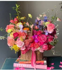Lựa chọn các mẫu hoa hồng đầy màu sắc như lẵng hoa hồng đỏ, trắng, vàng, hồng tím... hoặc màu sắc độc đáo khác